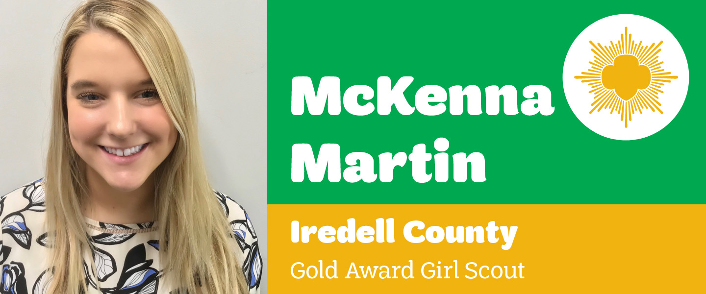 Girl Scouts Carolinas Peaks to Piedmont is pleased to announce that McKenna Martin, Mooresville, earned her Girl Scout Gold Award, the highest award in Girl Scouting.