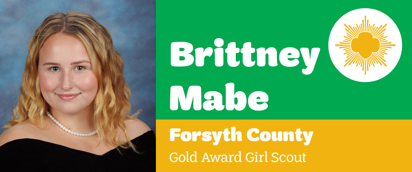 Girl Scouts Carolinas Peaks to Piedmont is pleased to announce that Brittney Mabe, Rural Hall, earned her Girl Scout Gold Award, the highest award in Girl Scouting.