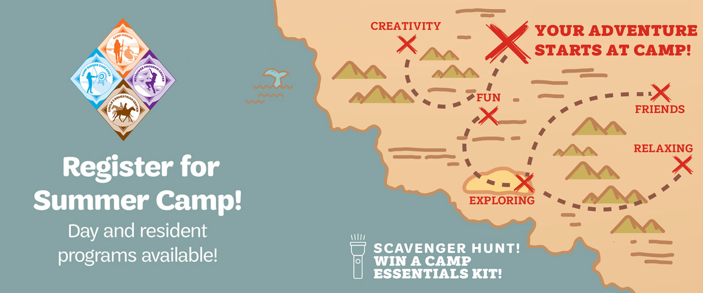Get a peek at the 2019 Camp Book before it hits your mailbox! Plus, be sure and take our scavenger hunt challenge- you could win a camp essentials kit to send to your favorite camper this summer!