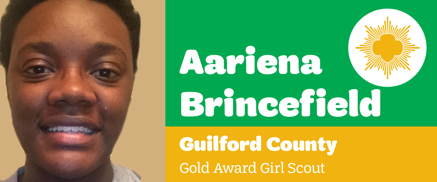 Girl Scouts Carolinas Peaks to Piedmont is pleased to announce that Aariena Brincefield, Greensboro, earned her Girl Scout Gold Award, the highest award in Girl Scouting.