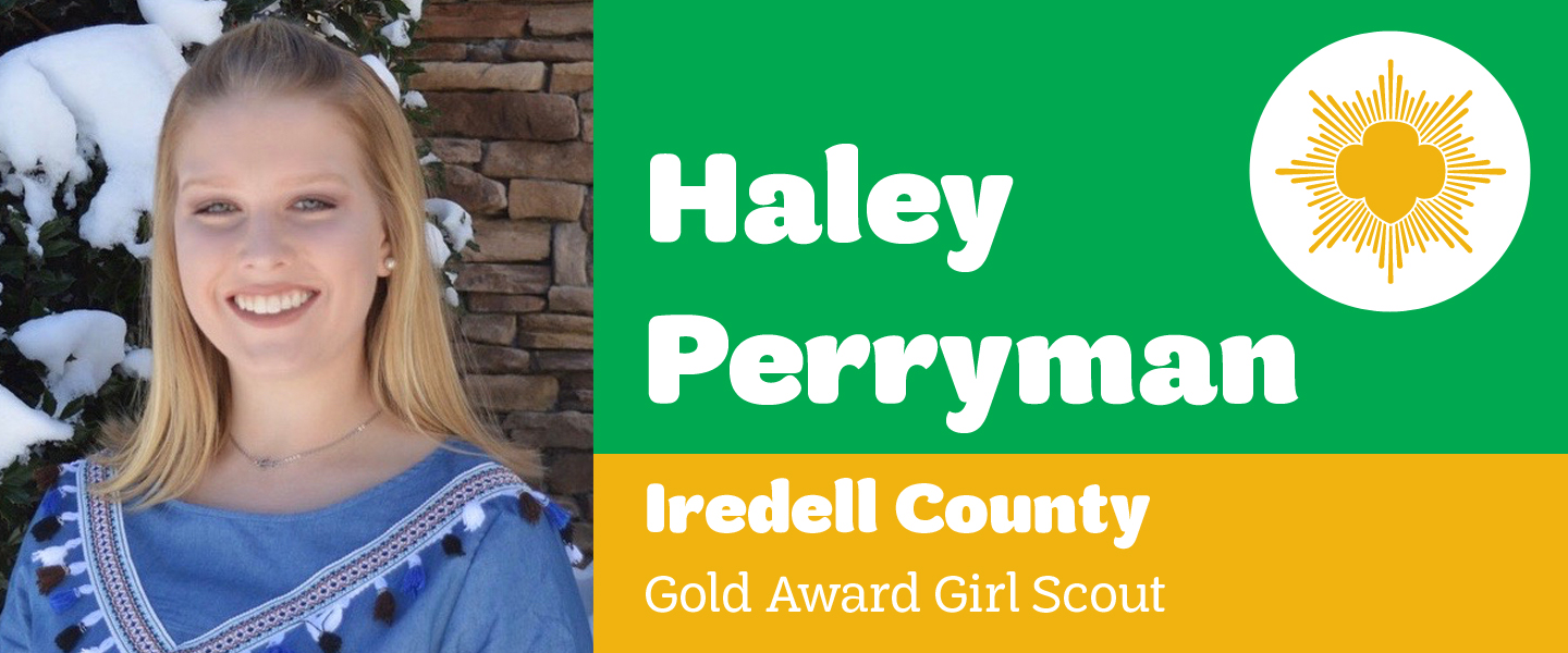 Girl Scouts Carolinas Peaks to Piedmont is pleased to announce that Haley Perryman, Mooresville, earned her Girl Scout Gold Award, the highest award in Girl Scouting.
