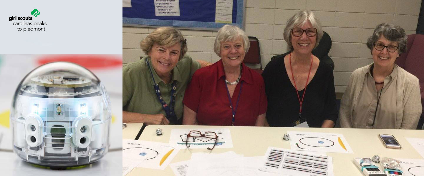 These generous women made a donation to Girl Scouts Carolinas Peaks to Piedmont (GSCP2P) that allowed the council to purchase all the materials to create Ozobot program kits for troop checkout at all four service centers. An Ozobot is a small and smart line-following robot that uses precise movement and sensors to follow and react to colors on a page or screen. This simple form of communication and programming allows children and adults of all ages to create and send Ozobots through an endless array of mazes, maps and racetracks. There are Ozobot program opportunities for troops at every program level from Daisy to Ambassador.