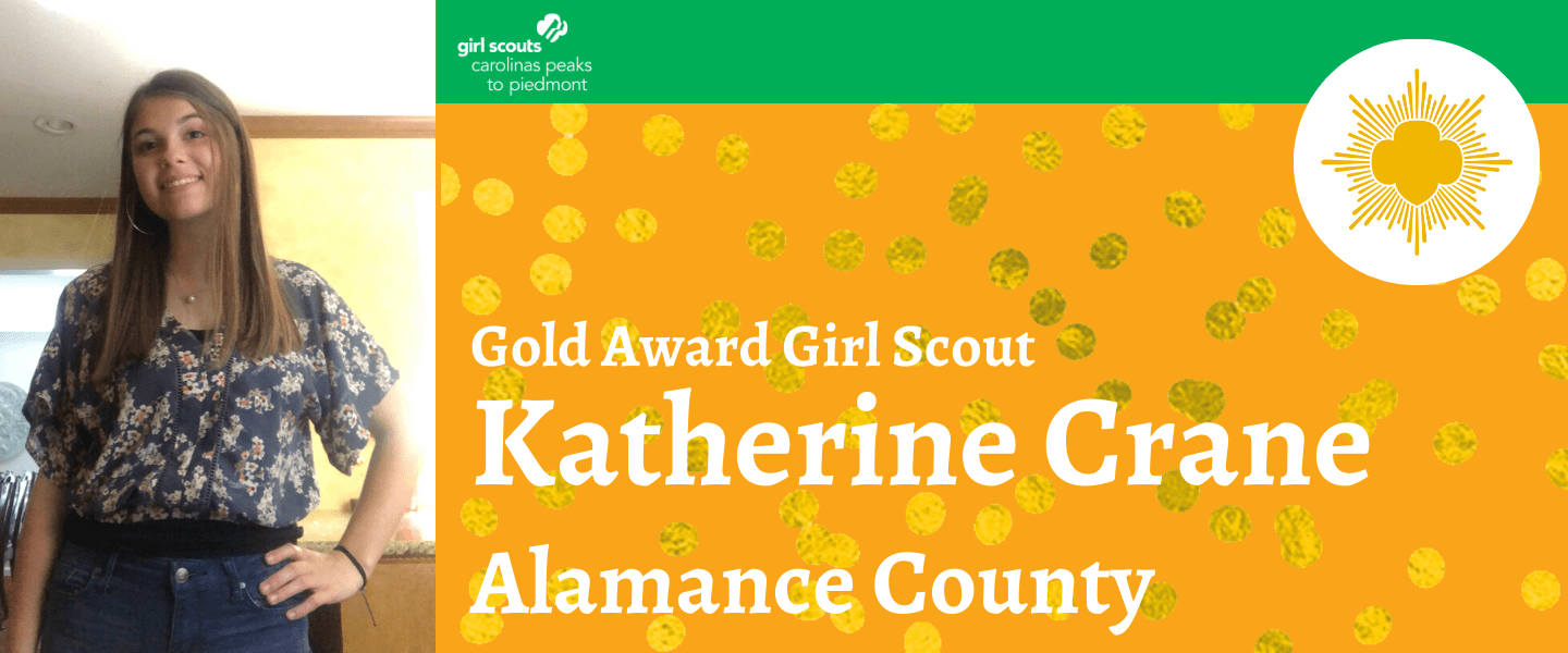 Girl Scouts Carolinas Peaks to Piedmont is pleased to announce that Katherine Crane, Burlington, has earned her Girl Scout Gold Award, the highest award in Girl Scouting.