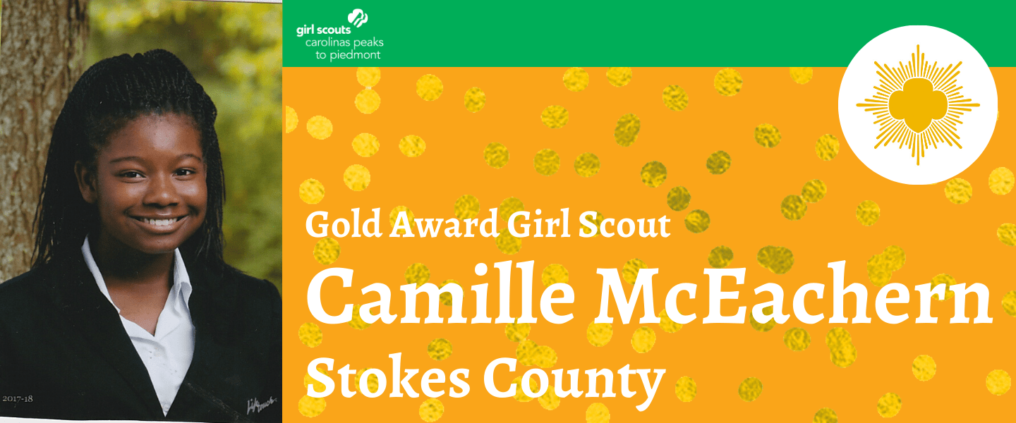 Girl Scouts Carolinas Peaks to Piedmont is pleased to announce that Camille McEachern, Walnut Cove, has earned her Girl Scout Gold Award, the highest award in Girl Scouting.