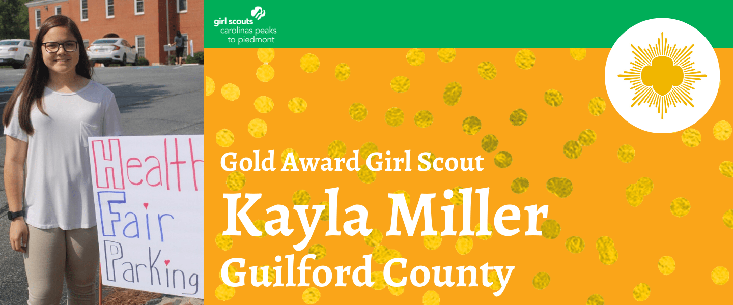 Girl Scouts Carolinas Peaks to Piedmont is pleased to announce that Kayla Miller, Greensboro, has earned her Girl Scout Gold Award, the highest award in Girl Scouting.