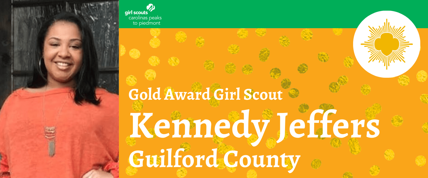Girl Scouts Carolinas Peaks to Piedmont is pleased to announce that Kennedy Jeffers, Greensboro, has earned her Girl Scout Gold Award, the highest award in Girl Scouting.