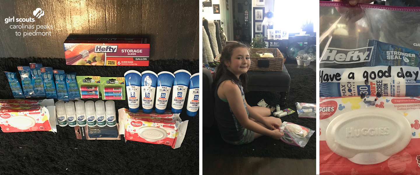 Congratulations to Kenzie Elizabeth Bullins, Individually Registered Girl Scout of Forsyth County, for earning her Girl Scout Bronze Award! She helped people who are homeless in her community by making summer wellness kits to give to them during the hotter months. The kits included lip balm with SPF, sunscreen, sunglasses, wet wipes, a no-water-needed tooth brush, comb and deodorant.