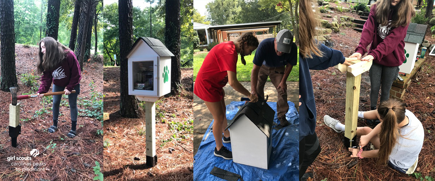 Congratulations to Bella McCloy, Ella Thomae and Sophie Young from Girl ScoutTroop 2040 of Guilford County for earning their Girl Scout Silver Award! They worked with Kiser Middle School to build a Little Free Library. They organized and advertised a drive to collect books to stock the library. The girls sorted the books by age group and donated extra books to St. Francis Church, Family Services Support Network and Hesters Daycare. Then they built the Little Library and installed it outside the middle school. Their work means more people will have access to new books for years to come!