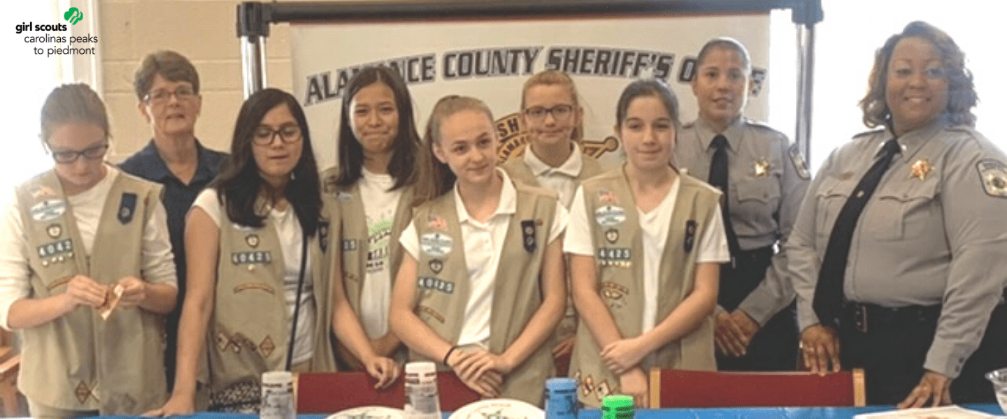 Congratulations to Anahi, Abby, Victoria, Kadi, Michelle and Sophie from Girl Scout Troop 40425 of Alamance County on recently earning their Girl Scout Silver Award! The troop put together a career fair for girls in their community, which was attended by several local businesses and institutions like Alamance County Sheriff’s Department, Burlington Pediatrics, Allstate Insurance, Guilford County EMS, Burlington Fire Department and PetSmart. Before the fair, the girls went to a local Service Unit meeting and invited all of the attendees to their event. Not only did the troop put together a successful Career Fair, but they also learned about the values of patience and hard work!