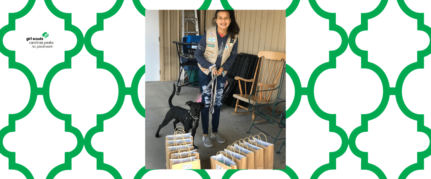 Congratulations to Mahlia of Troop 2997 of Henderson County on recently earning her Girl Scout Silver Award! For her project, Mahlia partnered with the Blue Ridge Humane Society. Mahlia’s focus was helping rescued animals acclimate to their new environments in a positive way by providing goodie bags when they were adopted. She provided the animal’s new family with leashes, collars, toys, food and water bowls, and training pads to help them take care of their new pet! This will help when they adopt their new animal! Mahlia set up donation boxes all around her community to collect the necessary items. Not only did she get to help rescue animals, but also assisted adoptive families in the challenging transition of bringing a pet into their home.