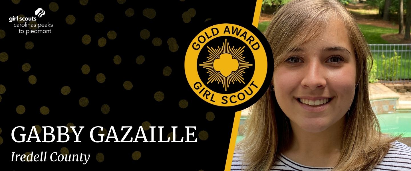 Girl Scouts Carolinas Peaks to Piedmont is pleased to announce that Gabby Gazaille, Mooresville, has earned her Girl Scout Gold Award, the highest award in Girl Scouting.