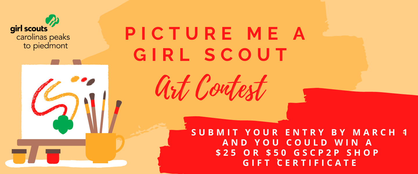 Girl Scouts Carolinas Peaks to Piedmont wants to celebrate Girl Scout Week with your artwork. Show us in art form how you see yourself as a Girl Scout. What are you doing? What are you learning? Who are you helping? How are you leading? How do you have courage? What makes your experience in Girl Scouts the best?