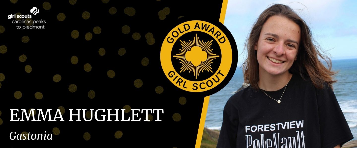 Girl Scouts Carolinas Peaks to Piedmont is pleased to announce that Emma Hughlett, Gastonia, has earned her Girl Scout Gold Award, the highest award in Girl Scouting.