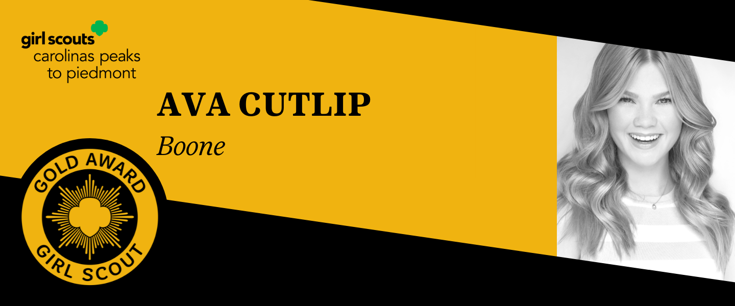 Girl Scouts Carolinas Peaks to Piedmont is pleased to announce that Ava Cutlip, Boone, has earned her Girl Scout Gold Award, the highest award in Girl Scouting.