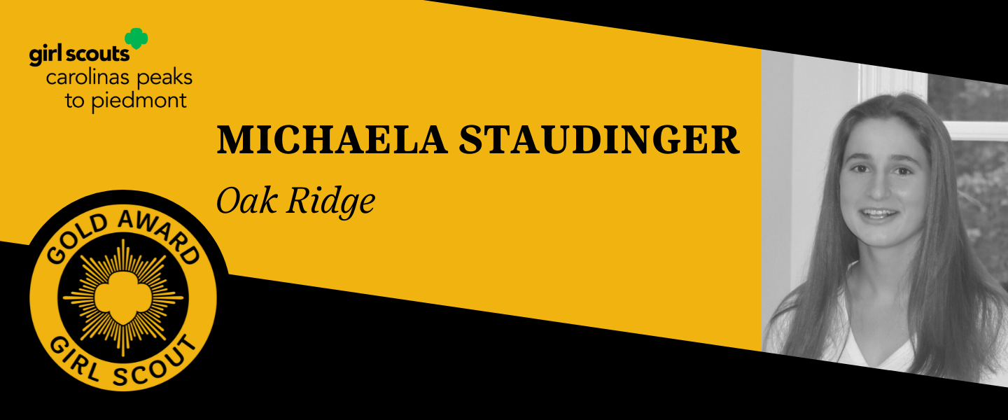 Girl Scouts Carolinas Peaks to Piedmont is pleased to announce that Michaela Staudinger, Oak Ridge, has earned her Girl Scout Gold Award, the highest award in Girl Scouting.