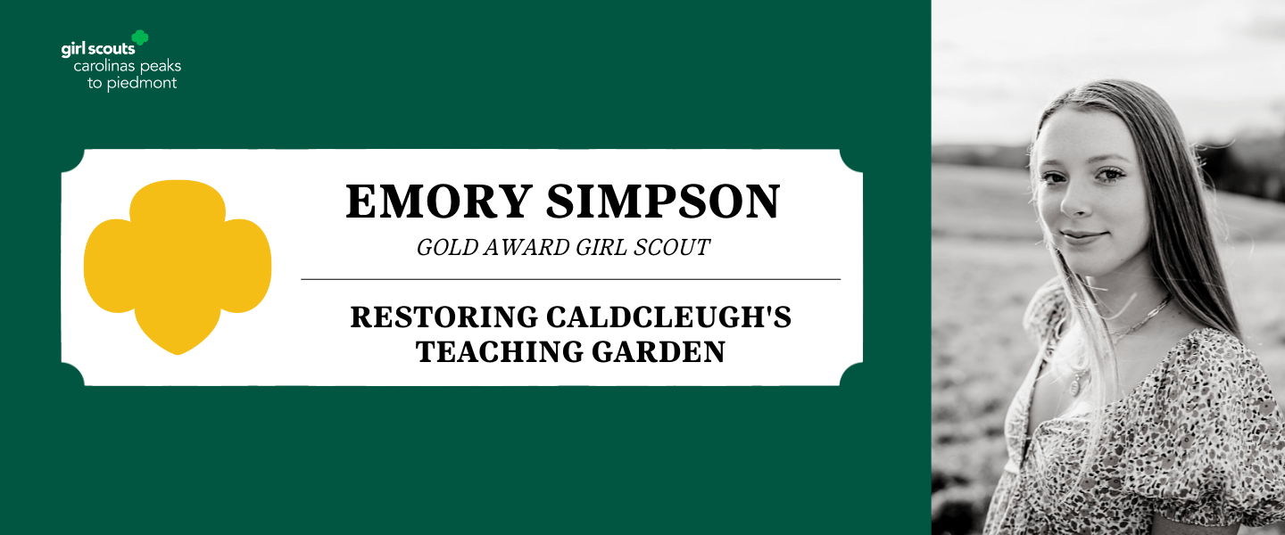 Girl Scouts Carolinas Peaks to Piedmont is pleased to announce that Emory Simpson, Greensboro, has earned her Girl Scout Gold Award, the highest achievement a Girl Scout can earn.