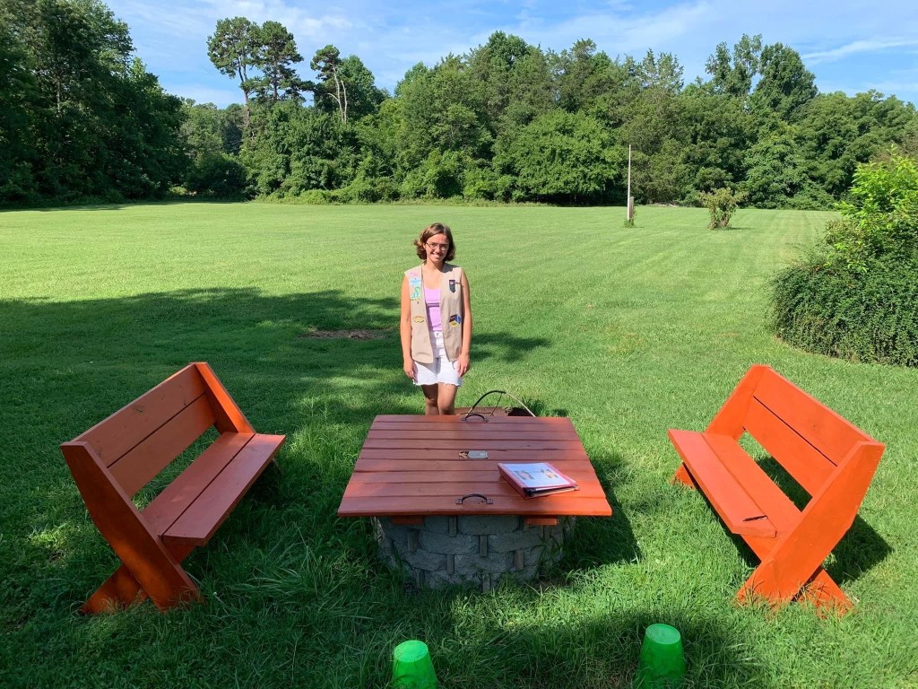 See, a member of Girl Scout Troop 2430, partnered with Piedmont Wildlife rehab facility to enhance an outdoor classroom area so the organization has the space to hold outdoor classes and teach the community how they can help rehab animals. See added a bigger fire pit and a table with benches to the classroom area.