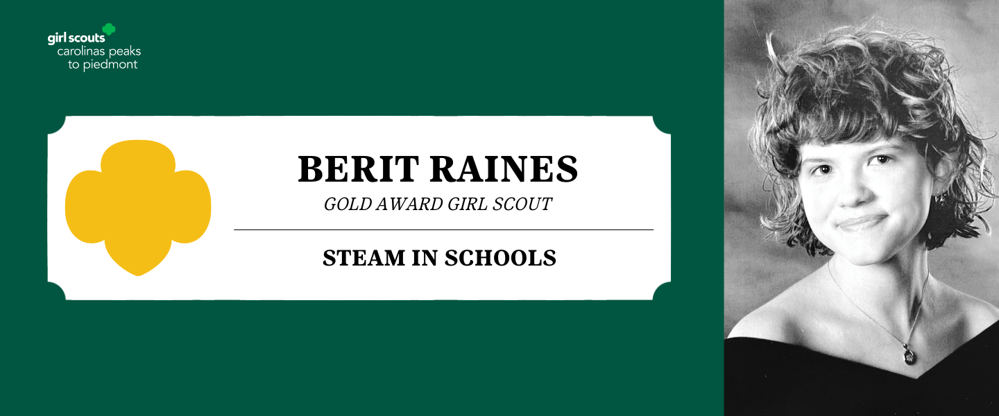 Girl Scouts Carolinas Peaks to Piedmont is pleased to announce that Berit Raines, Flat Rock, has earned her Girl Scout Gold Award, the highest achievement a Girl Scout can earn.