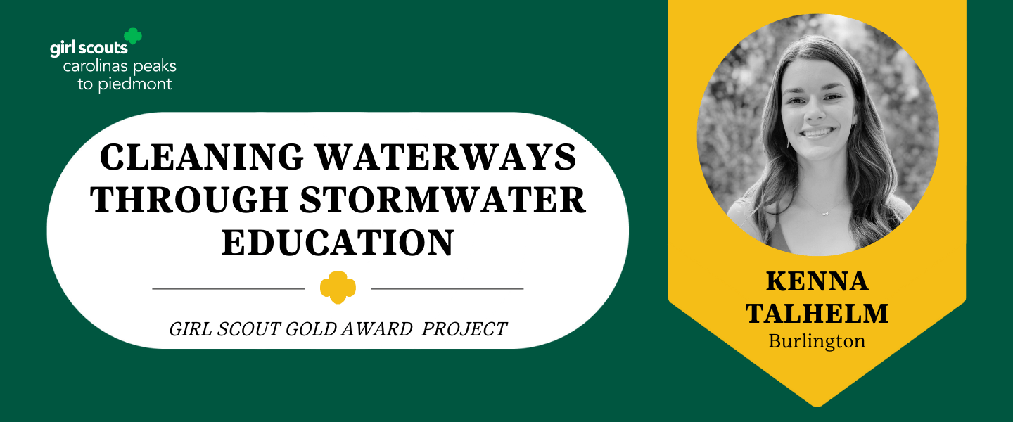 Talhelm, daughter of Kip and Kyle Talhelm, and a member of Girl Scouts Troop 40607, worked with Stormwater SMART with the Piedmont Triad Regional Council through the NC Stream Watch program. She hosted creek clean-ups where the focus was education and hoped to address the root cause of the issue. She created informational flyers and a website that act as resources for the public to learn about proper pet waste disposal, among many other ways they can help to combat water pollution.