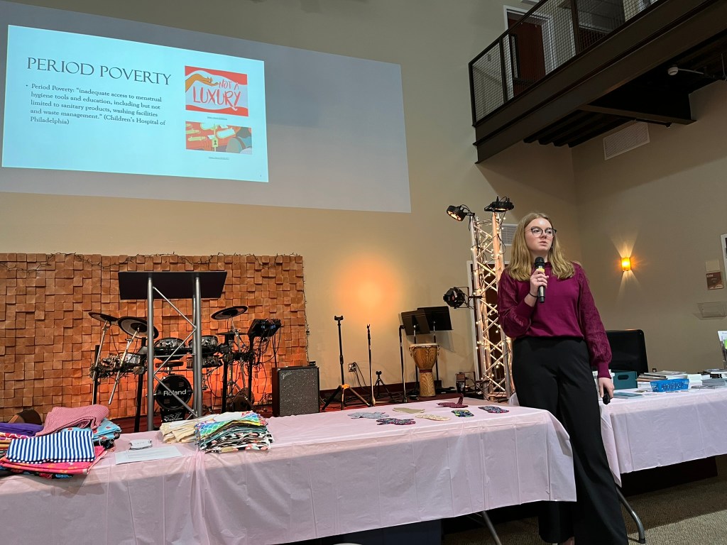 Harper, a member of Girl Scout Troop 13135, presented to various women’s organizations to inform them about period poverty and taught attendees how to prepare materials so that she could personally sew 300 reusable menstrual pads. Her presentations included take-home instructions for anyone who wanted to sew their own reusable menstrual pads and contribute to her project. Harper created 100 menstrual period packs, containing reusable pads, that were distributed to girls around the world through Samaritan’s Purse Operation Christmas Child.