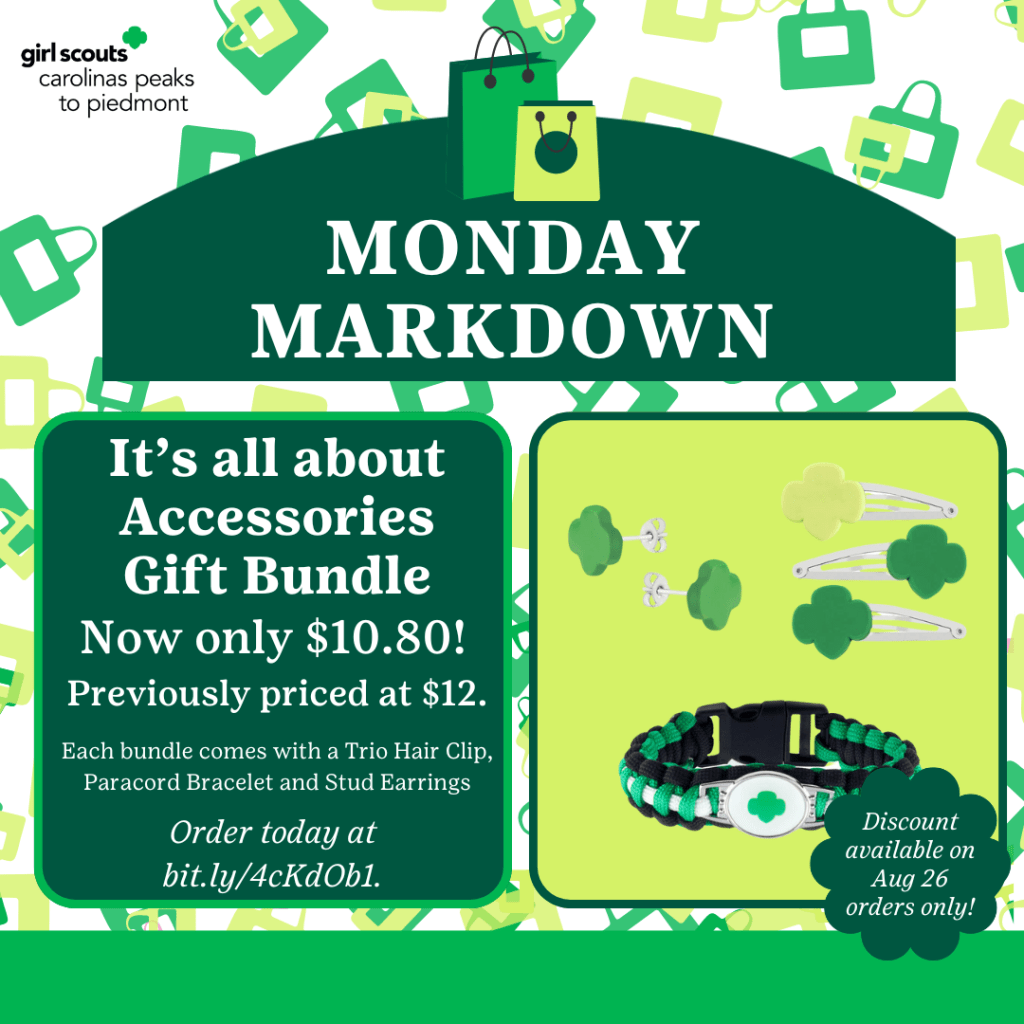 Know a Girl Scout fashionista? Check out the It’s all about the Accessories Gift Bundle! All adorable accessories including Trio Hair Clips, Paracord Bracelet and Mini Stud Earrings.