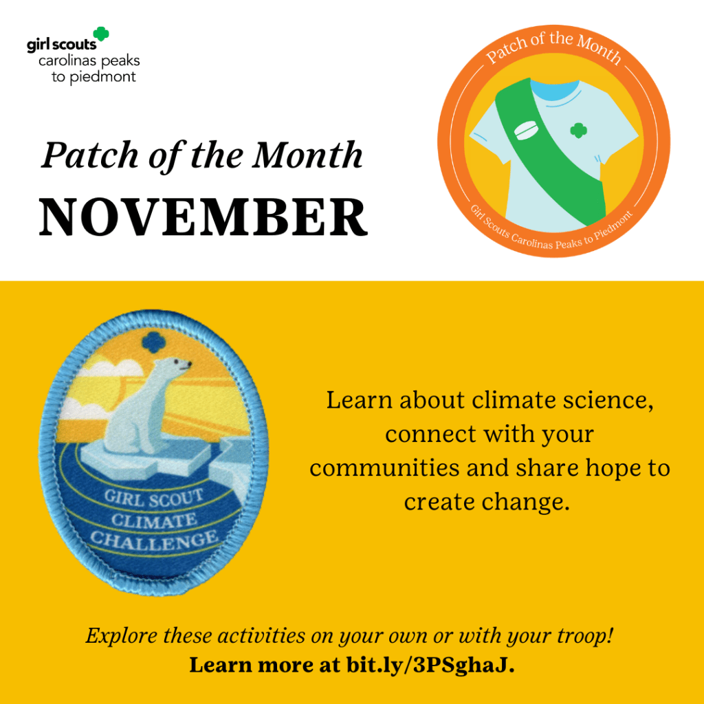 We’re highlighting the Girl Scout Climate Challenge Patch this month! Learn about climate science with fun activities for all ages!
