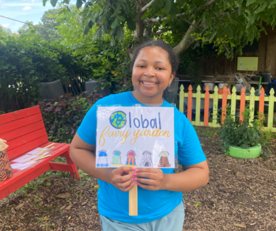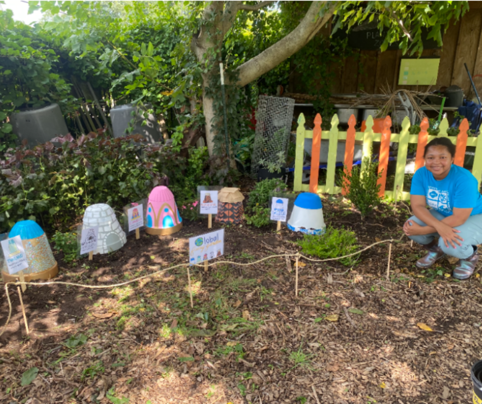 Ava led a team of volunteers from various community organizations to craft fairy houses inspired by international countries like Greece and Thailand, create informational signs and plant a garden at the museum. Visitors will learn vocabulary relating to gardens, fairies, countries and architectural elements through cards placed in front of each house of the fairy garden.