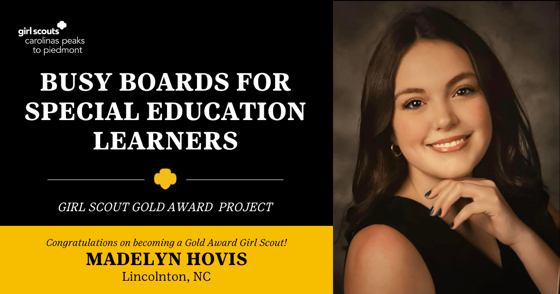 Madelyn Hovis of Girl Scout Troop 2305 in Lincoln County has earned the Girl Scout Gold Award for a community leadership and service project that addresses the need for special education resources.