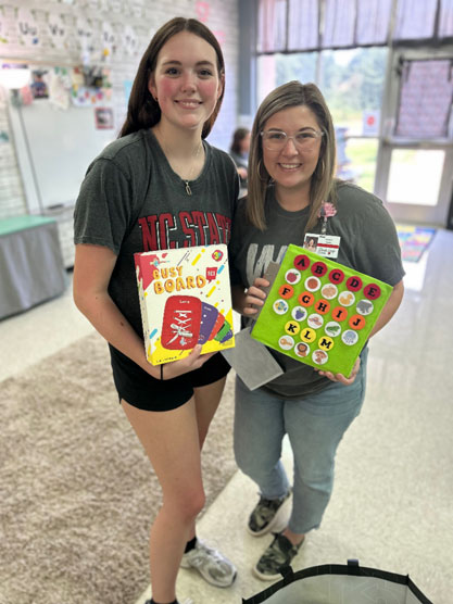 Madelyn identified that local special education teachers have had difficulty managing their classrooms due to limited access of individualized resources their students need. She partnered with Iron Station Elementary School to create busy boards for special education learners that are durable and customized to the needs of their students.