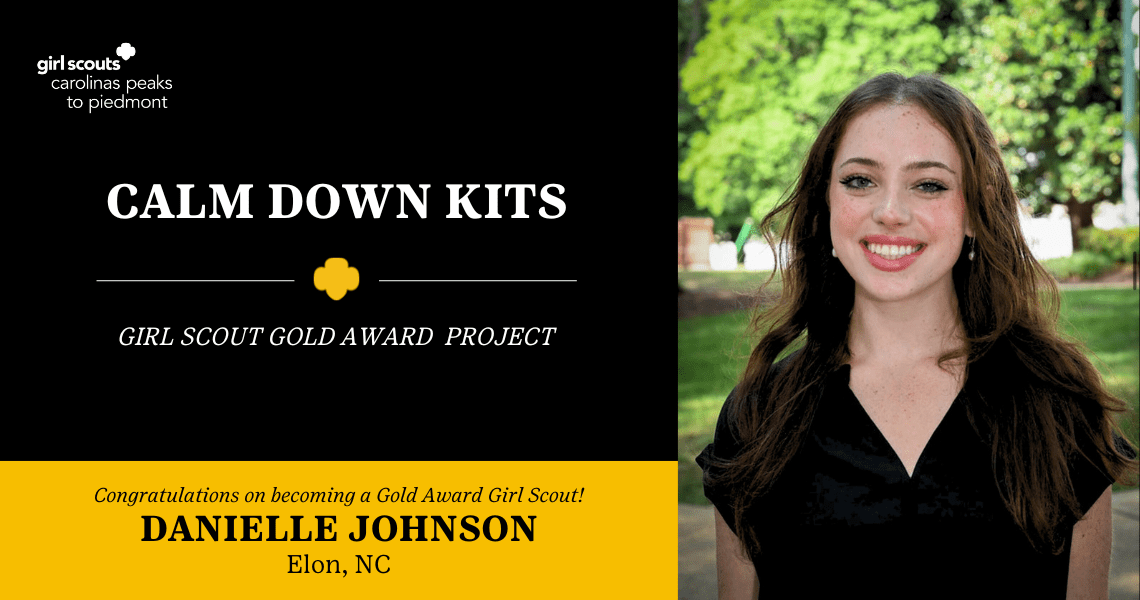 Danielle Johnson of Girl Scout Troop 80019 in Alamance County has earned the Girl Scout Gold Award for a community leadership and service project that addresses behavioral management in local elementary school students by teaching them to calm down on their own.