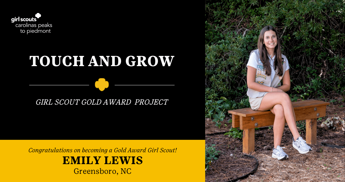 Emily Lewis of Girl Scout Troop 2493 in Guilford County has earned the Girl Scout Gold Award for a community leadership and service project that addresses the need for inclusive learning spaces for children with disabilities.