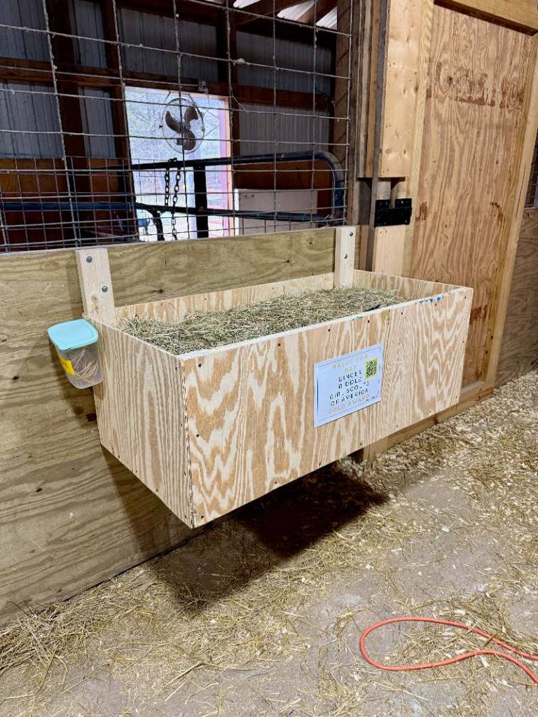 “Clean feed is imperative to livestock health and to the overall health of the barn,” said Riddle, a Girl Scout of 12 years. “The elevated livestock feed storage container protects the hay from ground moisture, water contamination, feathers, other animal feces, cross contamination of used stall hay and feed bag spillage.”