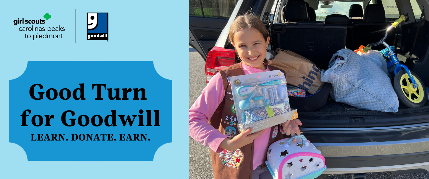 Want to share your experience on social media? Tag our council on Instagram (@girlscoutsp2p) and Facebook (Girl Scouts Carolinas Peaks to Piedmont) as well as your local Goodwill (@GoodwillNWNC, @goodwillsp or @triadgoodwill).