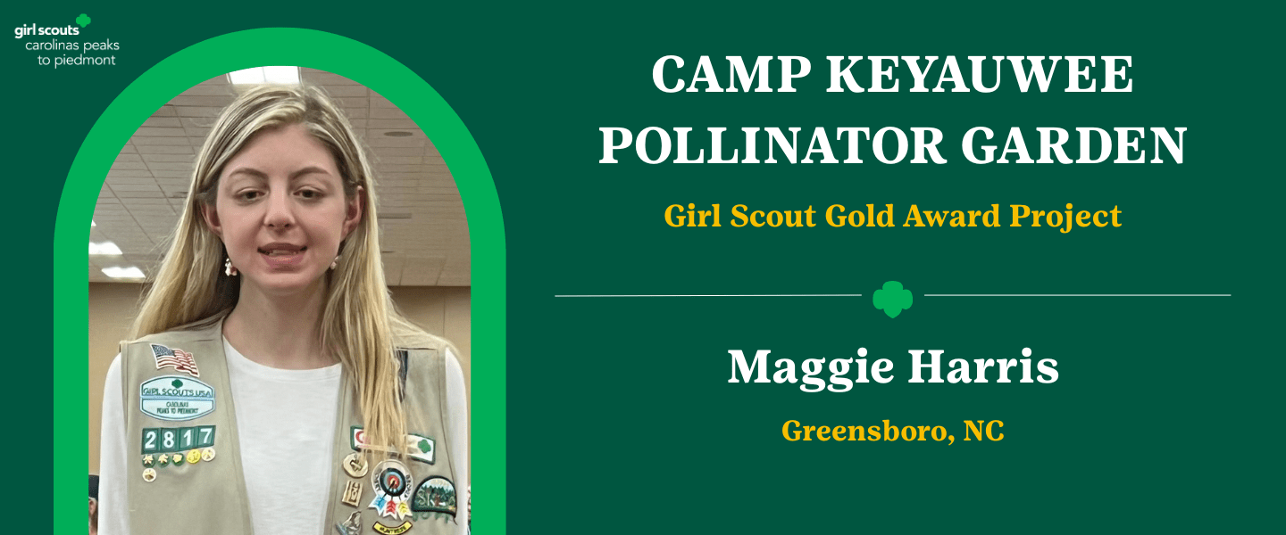 Maggie Harris of Girl Scout Troop 2817 in Guilford County has earned the Girl Scout Gold Award for a community leadership and service project that focuses on environmental sustainability and aids aids local pollinators.