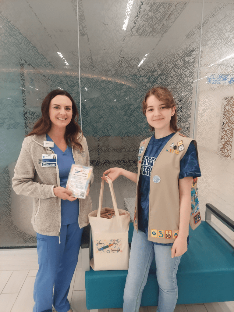 Julia Gladstone of Girl Scout Troop 2876 in Guilford County has earned the Girl Scout Gold Award for a community leadership and service project that provides stress relief for young hospital patients and their families.