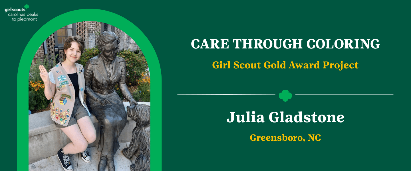 Julia Gladstone of Girl Scout Troop 2876 in Guilford County has earned the Girl Scout Gold Award for a community leadership and service project that provides stress relief for young hospital patients and their families.