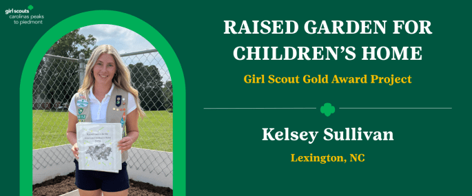 Kelsey Sullivan of Girl Scout Troop 40012 in Davidson County has earned the Girl Scout Gold Award for a community leadership and service project that focuses onenvironmental sustainability and helps students learn about growing their own vegetables. To increase access to fresh food and inform local kids, the Girl Scout Ambassador partnered with American Children’s … Continue reading Raised Garden for Children’s Home: Kelsey Sullivan’s Girl Scout Gold Award Project