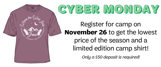 Camp registration for the 2019 summer programs opens at 6 a.m. on Monday, November 26! If you register that day, which also happens to be Cyber Monday, you'll get a FREE, one-of-a-kind camp T-shirt, perfect for putting under your tree for your Girl Scout! All you need to do to claim your spot is pay … Continue reading Summer Camp Registration Opens November 26