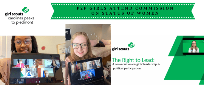 Every year, 16 Girl Scouts from across the country are accepted to become Girl Scout delegates for the CSW (Commission on the Status of Women). This year, the 65th Annual Meeting of the Commission on the Status of Women is no different. Girl Scouts Carolinas Peaks to Piedmont (GSCP2P) has one staff member and two … Continue reading GSCP2P Girls Participate in the 65th Meeting of the Commission on the Status of Women