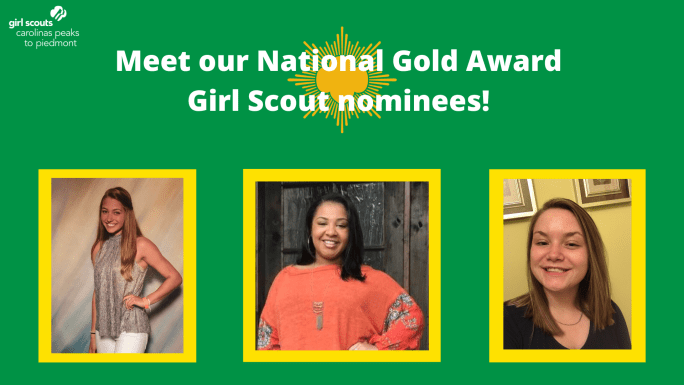 Girl Scouts Carolinas Peaks to Piedmont (GSCP2P) is pleased to announce three Girl Scouts as nominees for National Gold Award Girl Scouts, an honor Girl Scouts of the USA presents every year. Zoey Curtis of Hendersonville, Kennedy Jeffers of Greensboro and Oliva Smith of Greensboro all earned their Girl Scout Gold Award, the highest award … Continue reading Girl Scouts Nominated for National Honor