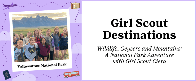 Girl Scout Destinations is the place to make new friends from all over the country, see and learn new things and bring back life-changing experiences and memories. That’s what Girl Scout Ciera did last summer when she attended “Wildlife, Geysers and Mountains: A National Park Adventure” at Grand Teton and Yellowstone National Parks! “My Girl … Continue reading Wildlife, Geysers and Mountains: A National Park Adventure with Girl Scout Ciera