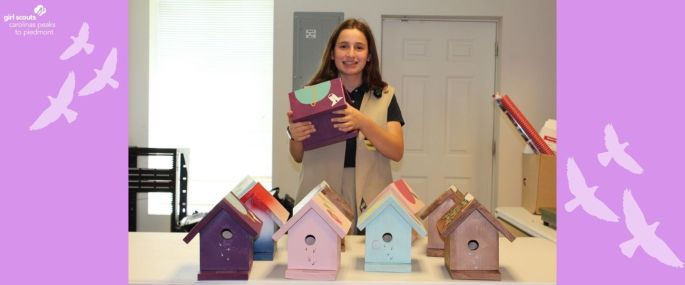 Congratulations to Michaela Staudinger of Girl Scout Troop 2326 in Forsyth County for completing her Girl Scout Silver Award! She successfully built 10 birdhouses by hand for a Salvation Army event and painted each one a different theme. She was able to showcase her creativity while learning some new time management skills along the way. … Continue reading #TroopTuesday Home For Birds