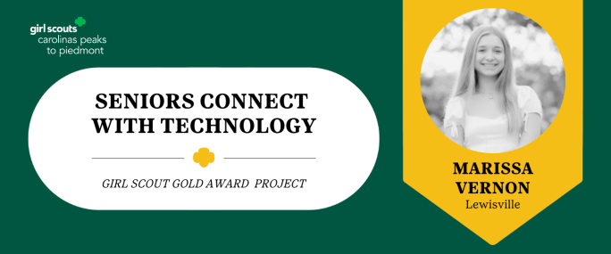 Girl Scouts Carolinas Peaks to Piedmont is pleased to announce that Marissa Vernon, Lewisville, has earned her Girl Scout Gold Award, the highest achievement a Girl Scout can earn. Vernon, daughter of Chris and Maria Vernon and a member of Girl Scout Troop 2385, created a workshop for seniors citizens in her community to teach … Continue reading Seniors Connect with Technology: Marissa Vernon’s Girl Scout Gold Award Project