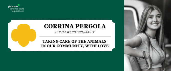 Girl Scouts Carolinas Peaks to Piedmont is pleased to announce that Corrina Pergola, Mooresville, has earned her Girl Scout Gold Award, the highest achievement a Girl Scout can earn. Pergola, a member of Girl Scout Troop 2145, built a donation box for Piedmont Animal Rescue that is open 24/7 and where the community can drop … Continue reading Taking Care of the Animals in Our Community, With Love: A Girl Scout Gold Award Project