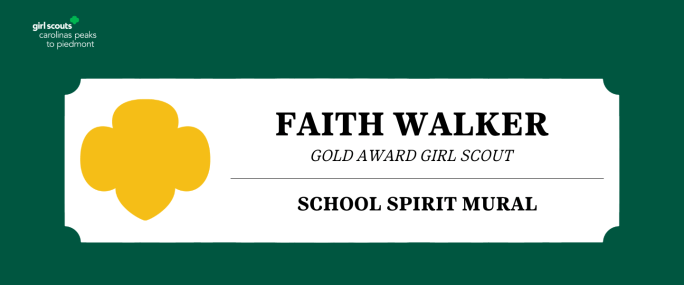 Girl Scouts Carolinas Peaks to Piedmont is pleased to announce that Jena Faith Walker, Rutherfordton, has earned her Girl Scout Gold Award, the highest achievement a Girl Scout can earn. Walker, a member of Girl Scout Troop 20166, helped preserve the sports history at Thomas Jefferson Classical Academy by painting a mural at the school … Continue reading School Spirit Mural: A Girl Scout Gold Award Project