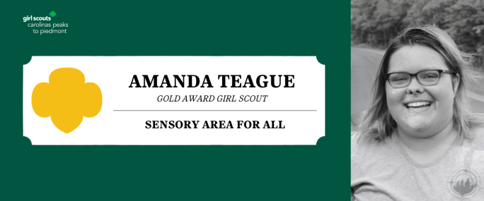 Girl Scouts Carolinas Peaks to Piedmont is pleased to announce that Amanda Teague, Waynesville, has earned her Girl Scout Gold Award, the highest achievement a Girl Scout can earn. Teague, daughter of Mark and Denise Teague and a member of Girl Scout Troop 30032, created a sensory area for the town of Canton. The different … Continue reading Sensory Area for All: A Girl Scout Gold Award Project