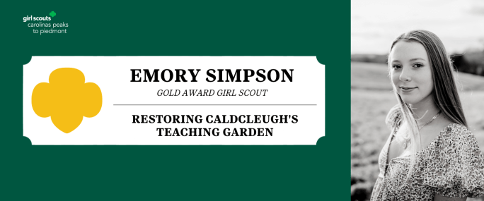 Girl Scouts Carolinas Peaks to Piedmont is pleased to announce that Emory Simpson, Greensboro, has earned her Girl Scout Gold Award, the highest achievement a Girl Scout can earn. Simpson, daughter of Philip and Stacy Simpson and a member of Girl Scout Troop 1714, helped revitalize the teaching garden at Caldcleugh Multicultural Center in Greensboro. … Continue reading Restoring Caldcleugh’s Teaching Garden: A Girl Scout Gold Award Project