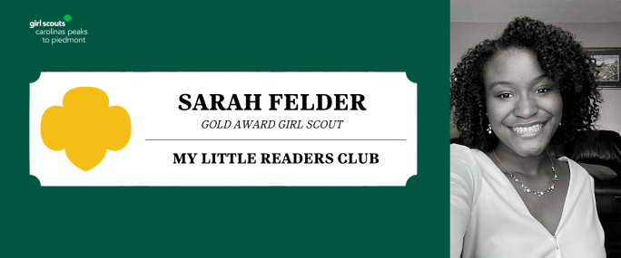 Girl Scouts Carolinas Peaks to Piedmont is pleased to announce that Sarah Felder, Jamestown, has earned her Girl Scout Gold Award, the highest achievement a Girl Scout can earn. Felder, a member of Girl Scout Troop 41740, created My Little Readers Club to give children of color access to books and bring a love of … Continue reading My Little Readers Club: A Girl Scout Gold Award Project