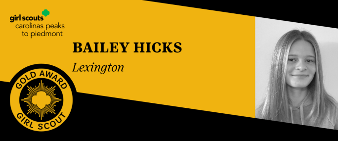 Girl Scouts Carolinas Peaks to Piedmont is pleased to announce that Bailey Hicks, Lexington, has earned her Girl Scout Gold Award, the highest award in Girl Scouting. Hicks, daughter of Allan and Beth Hicks and a member of Girl Scout Troop 41495, constructed three sensory bin tables for the enrichment room at Midway Preschool. The … Continue reading Bailey Hicks Earns Girl Scouts’ Highest Honor