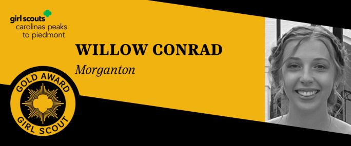 Girl Scouts Carolinas Peaks to Piedmont is pleased to announce that Willow Conrad, Morganton, has earned her Girl Scout Gold Award, the highest award in Girl Scouting. Conrad, a member of Girl Scout Troop 12949, worked with the Burke County Department of Social Services to collect suitcases and essential items for children and teens in … Continue reading Willow Conrad Earns Girl Scouts’ Highest Honor